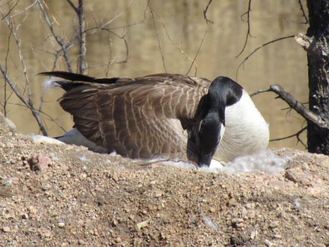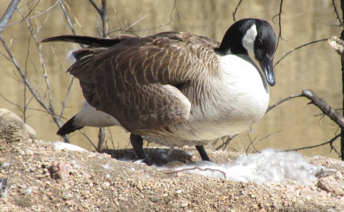 About a month ago, I happened across a downy Canada Goose nest faithfully tended by the mother-to-be. It falls to the female to sit on the nest for the 25 to 28 days it takes their one yearly clutch of two to eight eggs to develop.