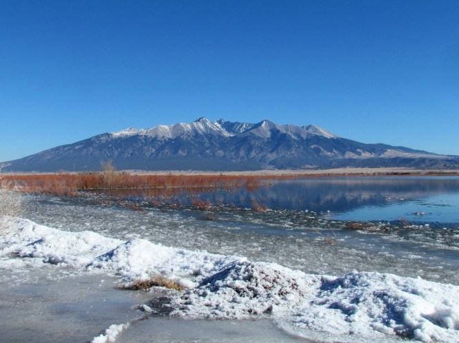 Mount Blanca Massif seen from Smith Reservoir which was still frozen not so long ago