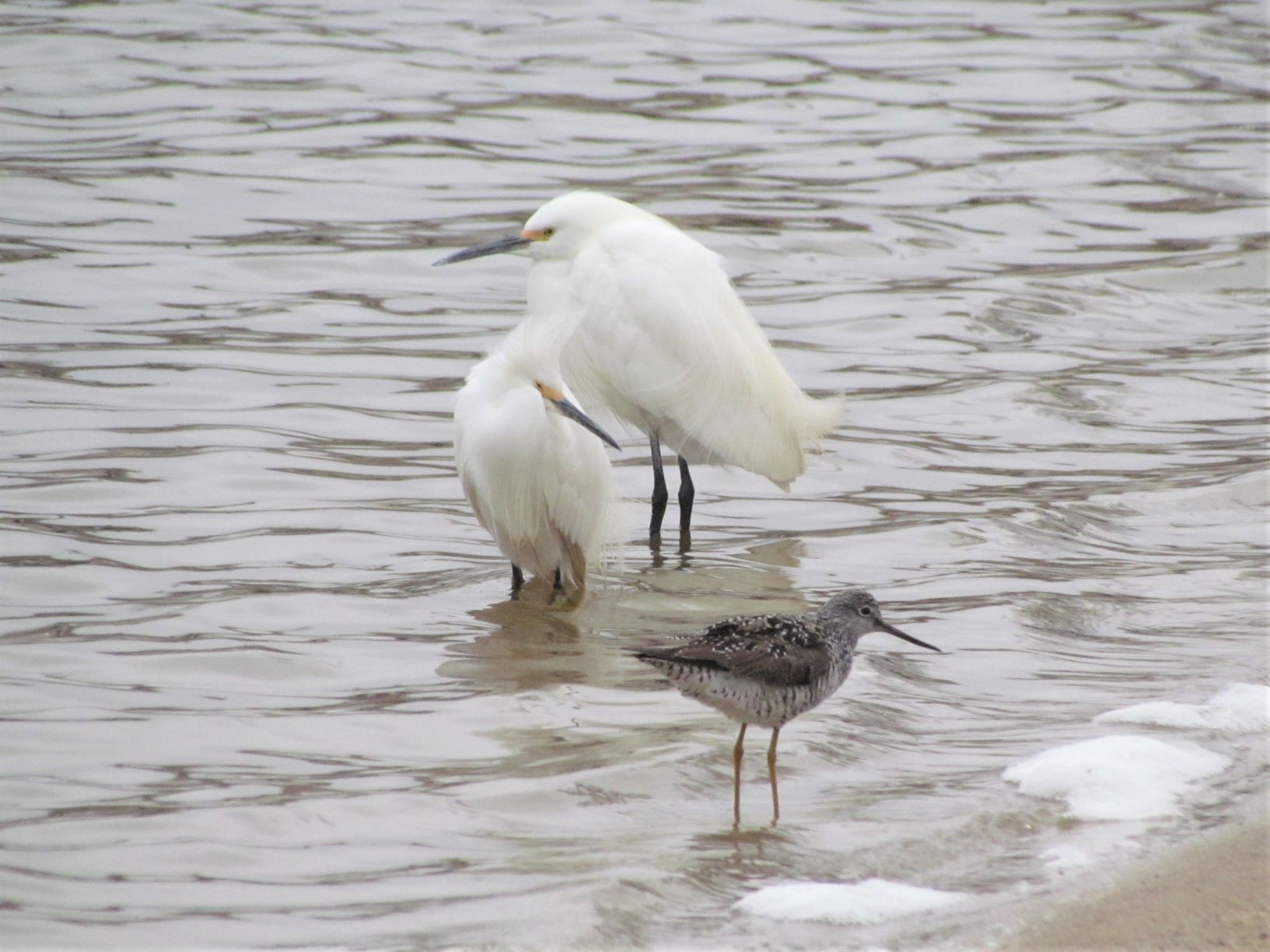 IMG_3098 (2) Published April 20, 2021 at 1633 × 1224 in Hoping for Spring, Hoping for Earth Next → 2 Snowy Egrets with 1 Greater Yellowlegs