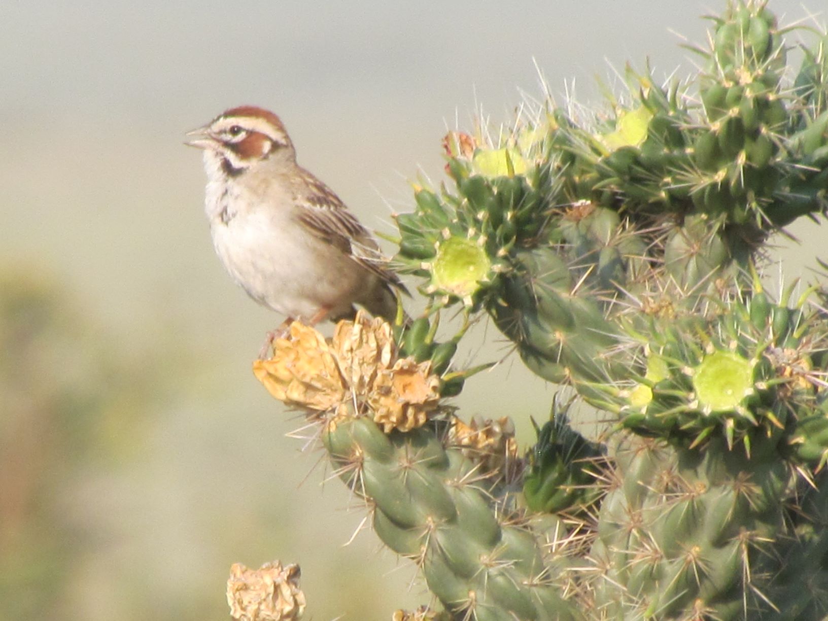 IMG_6446 Published July 12, 2021 at 1632 × 1224 in A Summer Day On The Prairie ← Previous Next → Lark Sparrow singing from a cholla