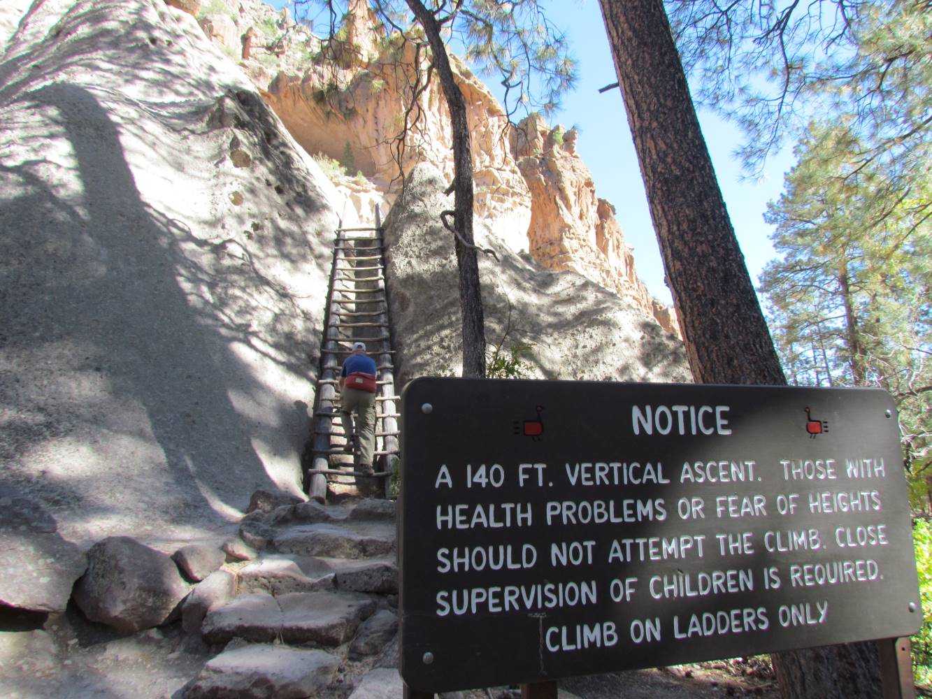 IMG_6556 Published January 15, 2024 at 1333 × 1000 in Ancestral Puebloans-Part 5: Bandelier ← Previous Next → The first of four ladders leading to Alcove House
