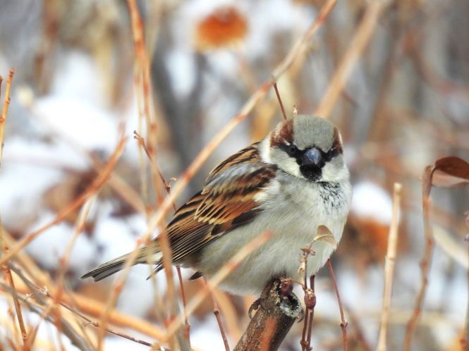 House Sparrow, belonging to one of the never-in-a-bad-mood group of birds