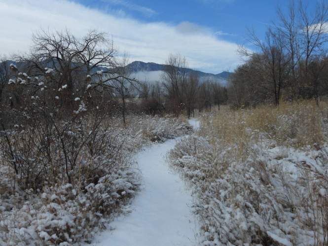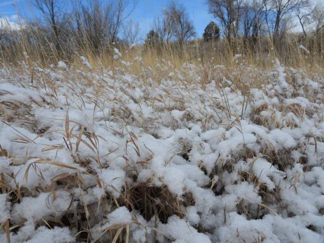 Contrary to a common misperception, not all of Colorado is covered with a blanket of white for months on end. In this part of the state east of the Rocky Mountains, most of our frozen precipitation generally melts within days or a few weeks due to the sun’s intensity at an elevation that ranges from 3,317 feet (1011 meters) at the Kansas border to 6,035 feet (1840 meters) here in Colorado Springs.