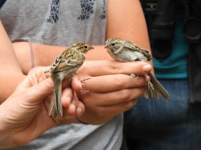 DSCN4433 (2) Published December 1, 2022 at 1671 × 1254 Banded Clay-colored Sparrow on the left, Brewer’s Sparrow on the right
