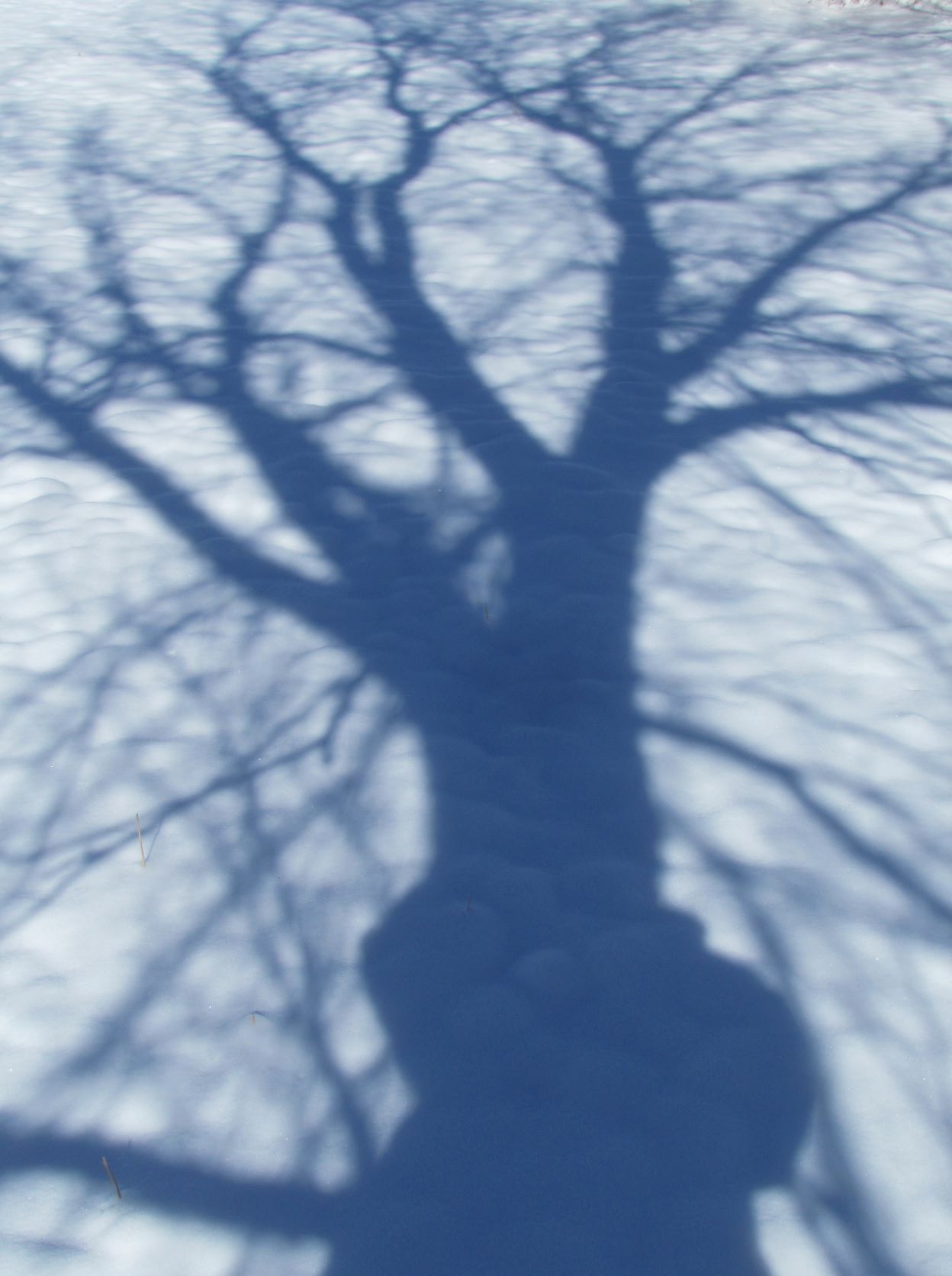 Tree silhouette on snow with selfie